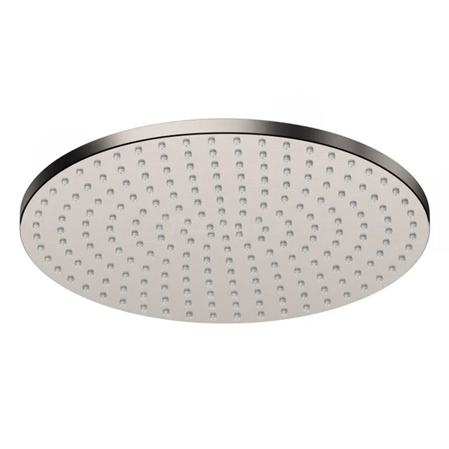 De regendouchekop is meermaals handmatig en machinaal gepolijst en heeft een zeer glad oppervlak. Na het polijsten wordt deze eerst vernikkeld en verchroomd, waardoor de afwerklaag extra sterk is. Vervolgens wordt de douchekop geborsteld en voorzien van een rvs-kleur door de toepassing van PVD. Dankzij het hoge afwerkingsniveau heeft de regendouche een luxe uitstraling.